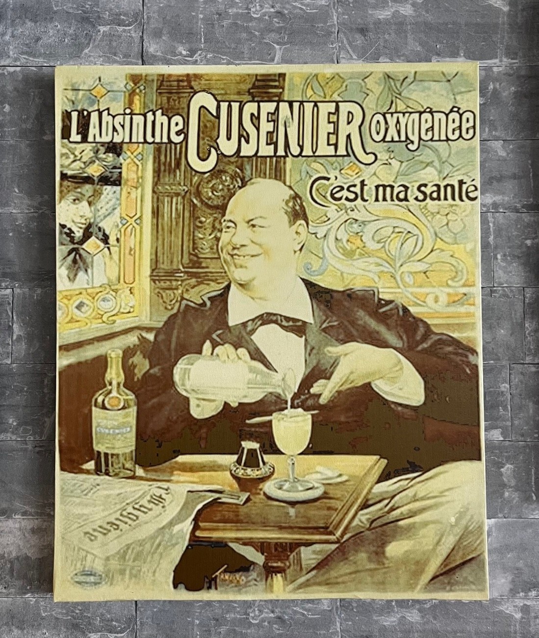 Het is een reproductie van een historische advertentie van Absinth, dat beweerde gezond te zijn door een speciaal zuurstofproces.